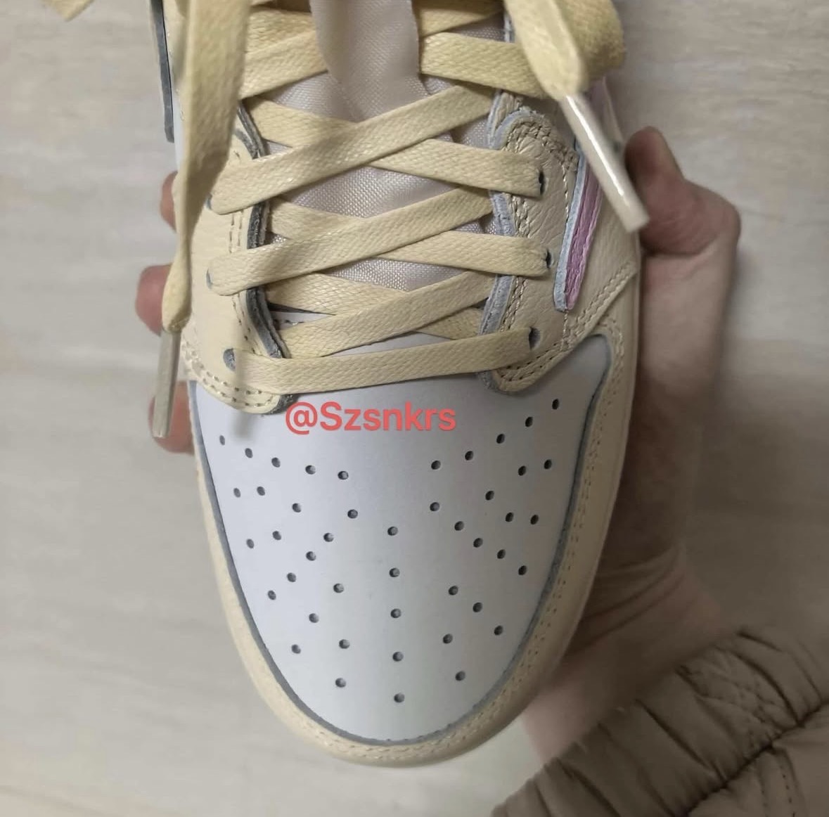 これまでのTravis ScottのAir Jordan 1 Lowは、Reverse MochaやOliveのようなダスティでグラウンドされたトーンが特徴だった。そこに突然現れたこの“Shy Pink”は、まるで朝焼けのような淡いSail(オフホワイト)のレザーベースに、Shy Pinkのスエードオーバーレイを重ね、特徴的なリバーススウッシュをトロピカルピンクで大胆に描く。エイジド加工のミッドソールがヴィンテージの風合いを加え、アウトソールは柔らかなピンクで優しく締めくくる。ヒールにはお馴染みのCactus JackスマイリーフェイスとWingsロゴが交互に刺繍され、タンにはScottのブランディングが控えめに主張すべてが絶妙にバランスされた、夏の光に映える一足だ。