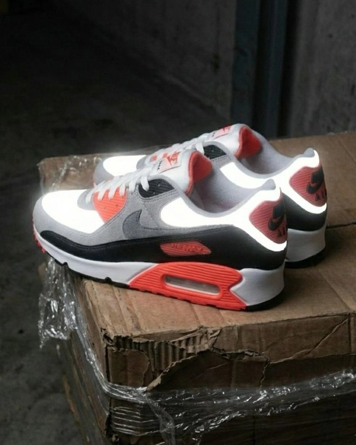 夜の街角で、ふと足元が閃光を捉える——そんな幻想的な瞬間を、Nikeが再び現実にする。1990年に生まれ、35年以上の時を越えてなお色褪せぬアイコン、Air Max 90の“Infrared”。その伝説的な炎が、今度は3Mの反射素材を纏い、現代の闇を照らす形で帰ってくる。