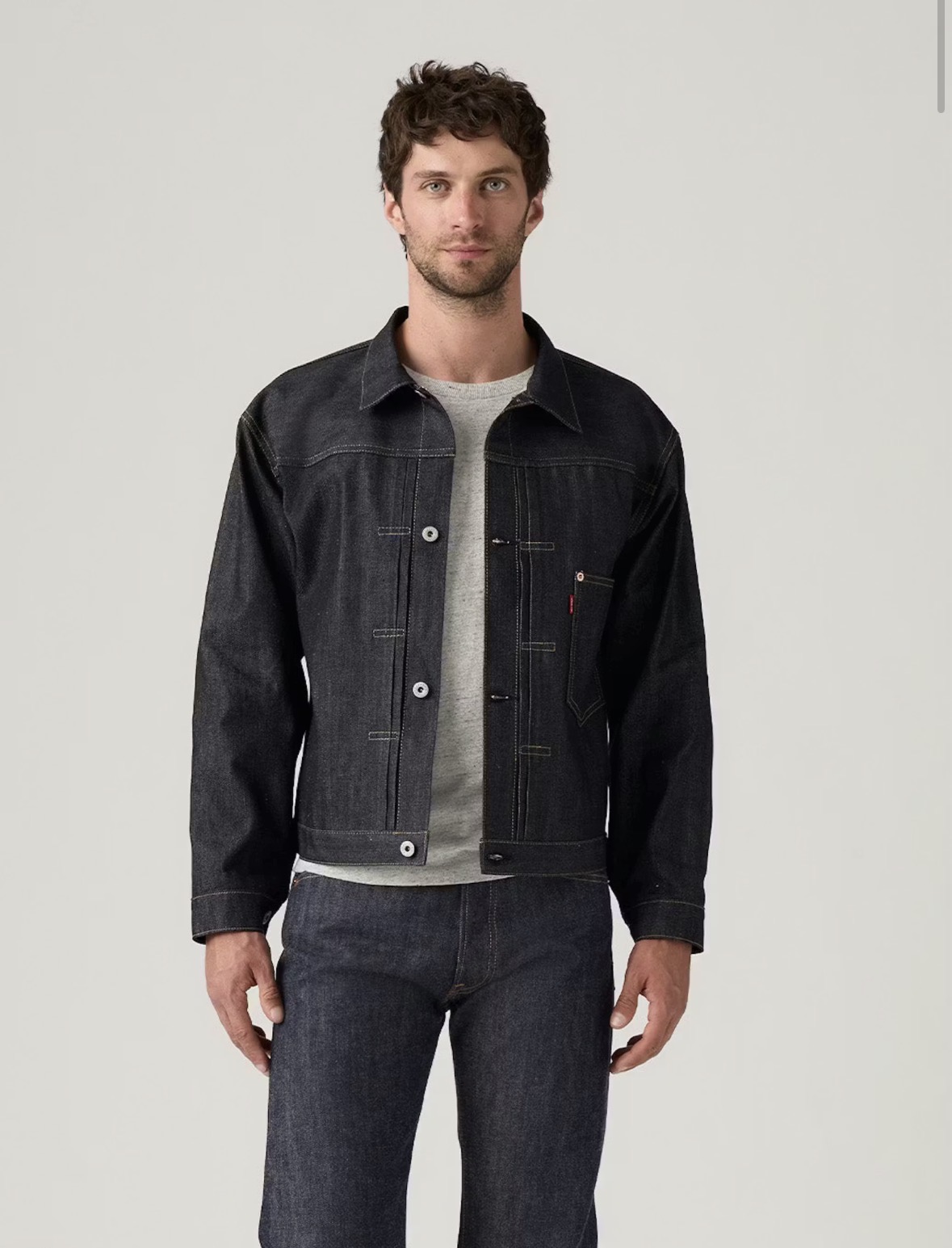最大の特徴は、ポケットフラップの省略とフロントボタンを通常の5つから4つに削減したミニマルなデザイン。ボタンには月桂樹(ローレル)刻印のものが用いられ、リベットはブランド刻印のない剥き出しのノンブランド仕様に。12オンスのセルビッジデニムは、ヴィンテージらしい重厚さと風合いを兼ね備え、穿き込むほどに唯一無二の表情へと育っていく。