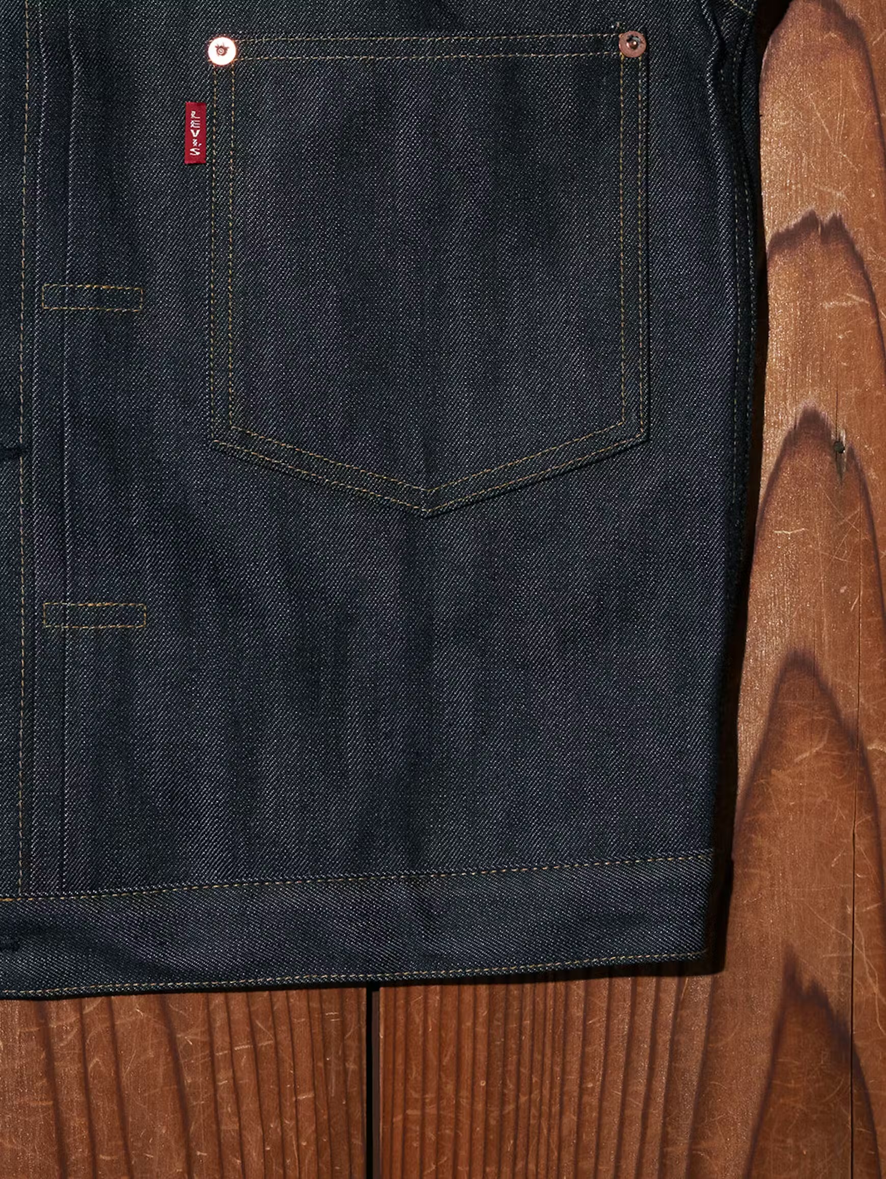 レッドタブは「®」のみのシンプルな表記。これは大戦期の仕様を再現したもので、通常の「LEVI’S®」タブと同様に製品不具合ではない。タブの種類は選べないが、それがまた本物のヴィンテージらしい味わいだ。