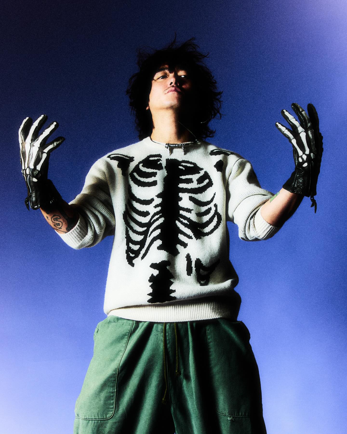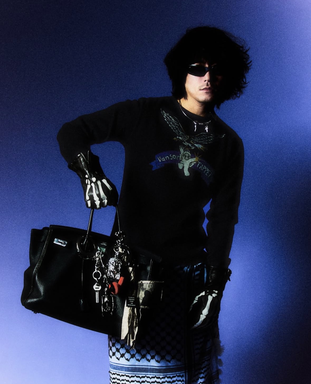 そして、クルーネックニットではVANSONのアイコニックなボーンモチーフをTAPPEI流に再構築。“骨折”したようなユーモラスなグラフィックが、シリアスなレザーカルチャーに軽やかな風を吹き込む。タフさと可愛らしさが同居する、この絶妙なバランスこそがコラボの真骨頂だ。