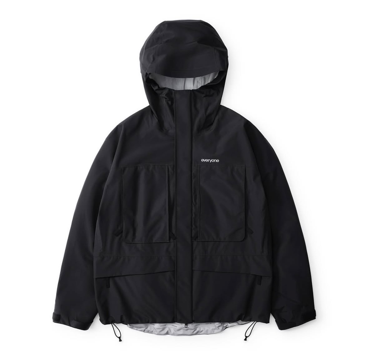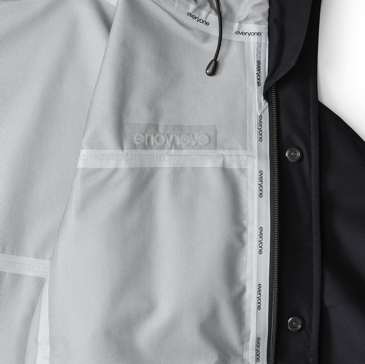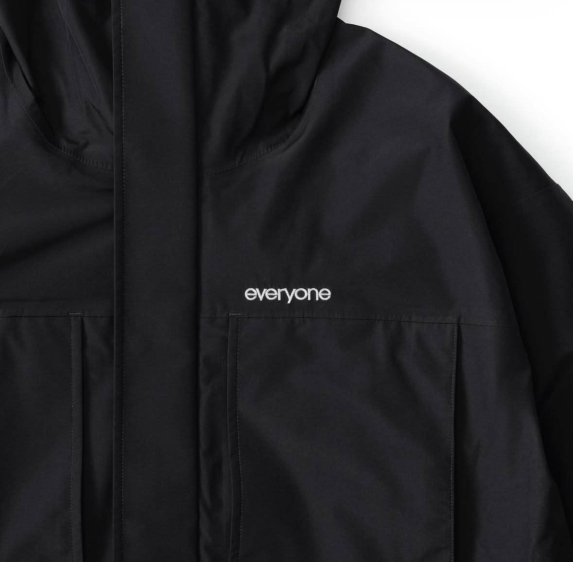 2026年1月3日、正午ちょうどにオープンする「everyone maebashi」の初売りで、待望の新作が初めて店頭に並ぶ。注目は、ブランドの真骨頂ともいえる3-layer shell jacket。防水・透湿性に優れた3層構造のシェルは、シンプルなシルエットながらも圧倒的な存在感を放つ。カラーはネイビーとブラックの2色展開。サイズはS(ウィメンズフィット)、M、L、XLを用意し、特にSサイズは女性向けの専用パターンで仕立てられている(着用イメージはブランド投稿の写真2、7を参照)。価格は71,500円。ストリートカルチャーの重鎮・eejebeeが着用した姿がすでにSNSで公開されており、その着こなしの完成度の高さが、アイテムのポテンシャルを雄弁に物語っている。