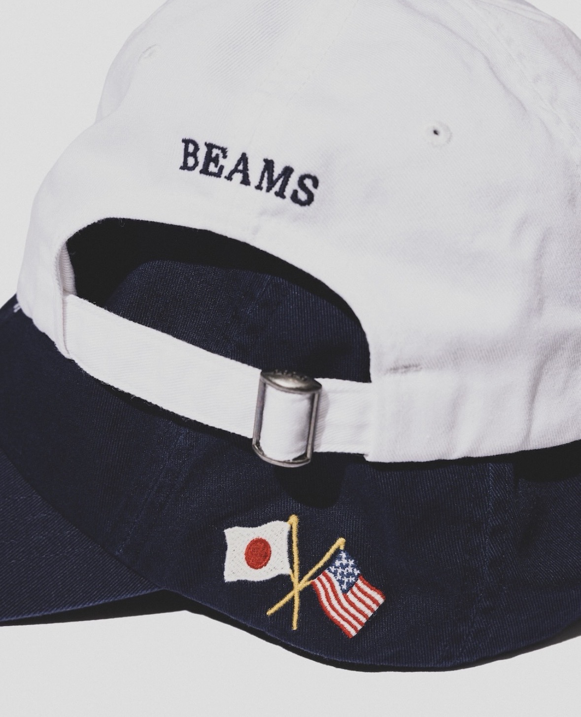 あわせてリリースされるのが、〈POLO RALPH LAUREN〉の定番コットンチノキャップをベースにした別注モデル。フロントサイドに国旗の刺繍を施し、バックのアジャスター上部には〈BEAMS〉ロゴを刺繍。シンプルながらも洗練されたアクセントが効いた、コーディネートの決め手になる逸品だ。