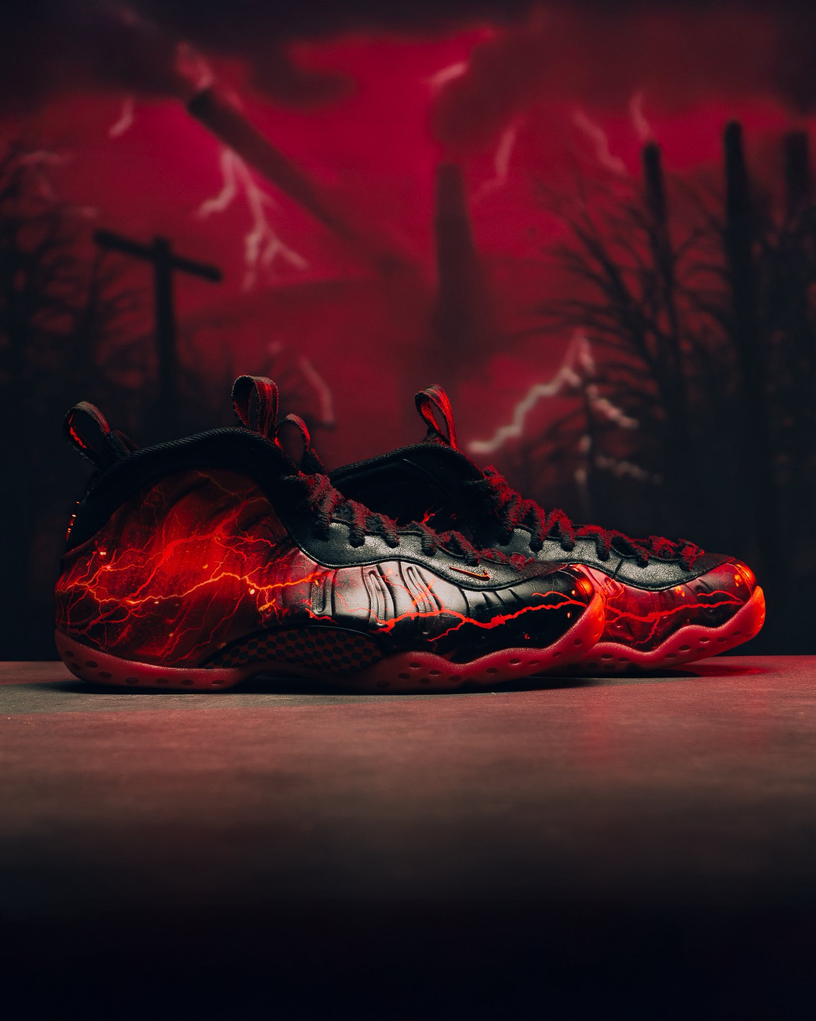 インソールにはVecnaを思わせる不気味なモチーフが潜み、プルタブにはあの象徴的なフレーズ「I found you」が刻まれ、着用するたびに物語のクライマックスが蘇る仕掛けだ。アウトソールも不透明な赤で統一され、全体に漂う異質なSF感が、Foamposite本来の未来的シルエットと見事に共鳴している。