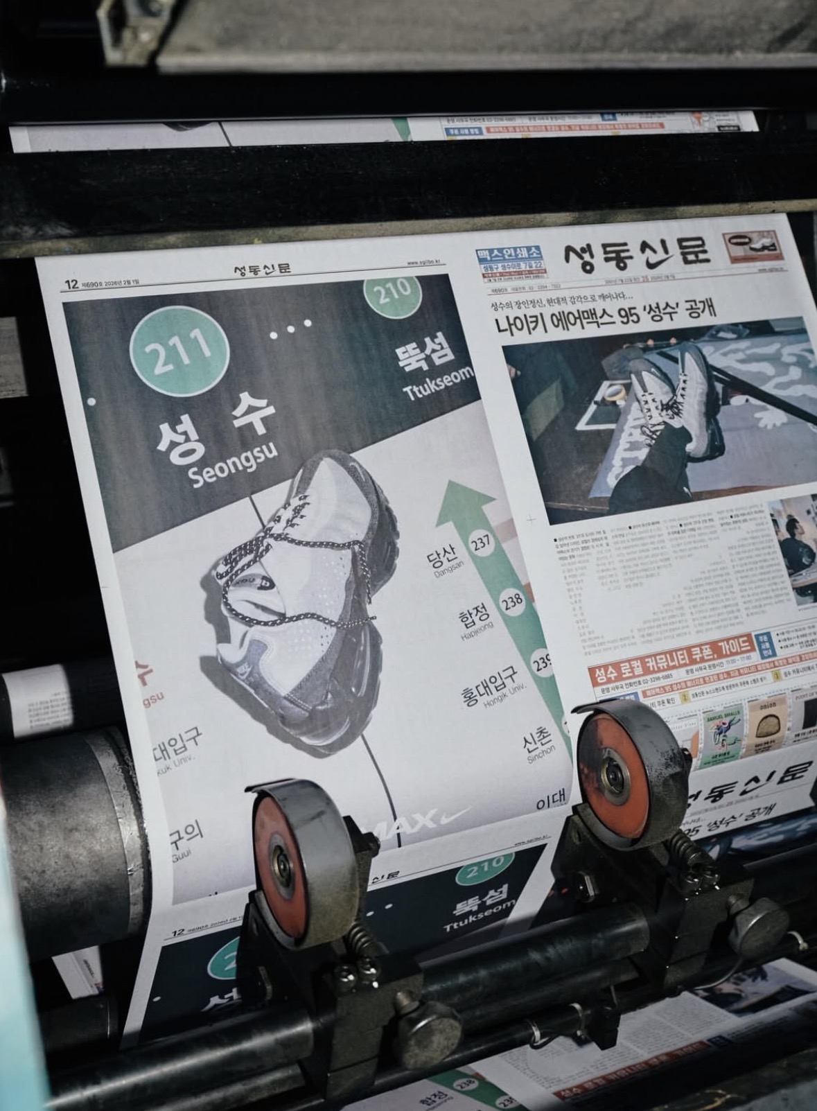 ナイキは、エアマックス95の文化的影響力を祝う「City Pack」コレクションを発表。パリ、香港、ボルチモア、そしてソウルの各都市をテーマにした4足がラインナップされ、その一足としてソウル・聖水洞(ソンスドン)をモチーフにした「Air Max 95 “Seongsu”」(スタイルコード:IQ3363-025)が登場する。