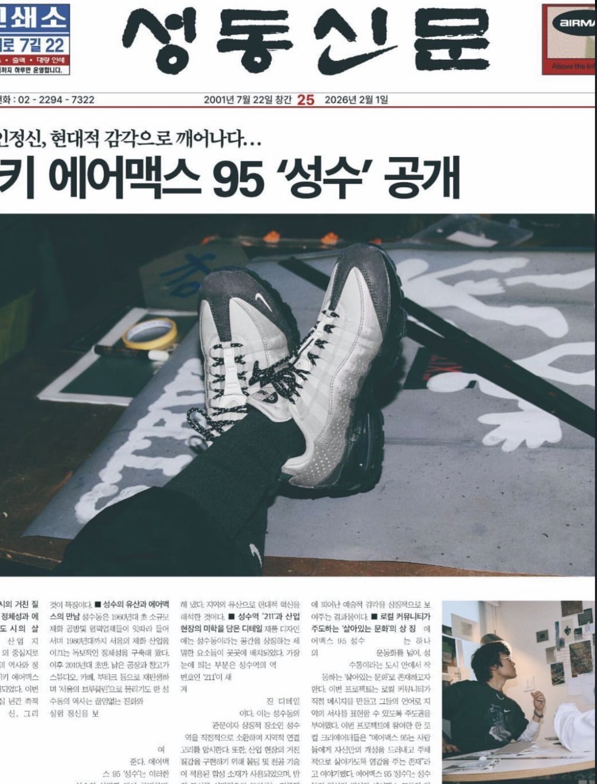 エアマックス95は、単なるスニーカーではなく、街の記憶と未来を繋ぐアイコン。「Seongsu」は、その最新の1ページ。2月19日SNKRSをチェックして、ソウルの鼓動を足元に刻もう。
