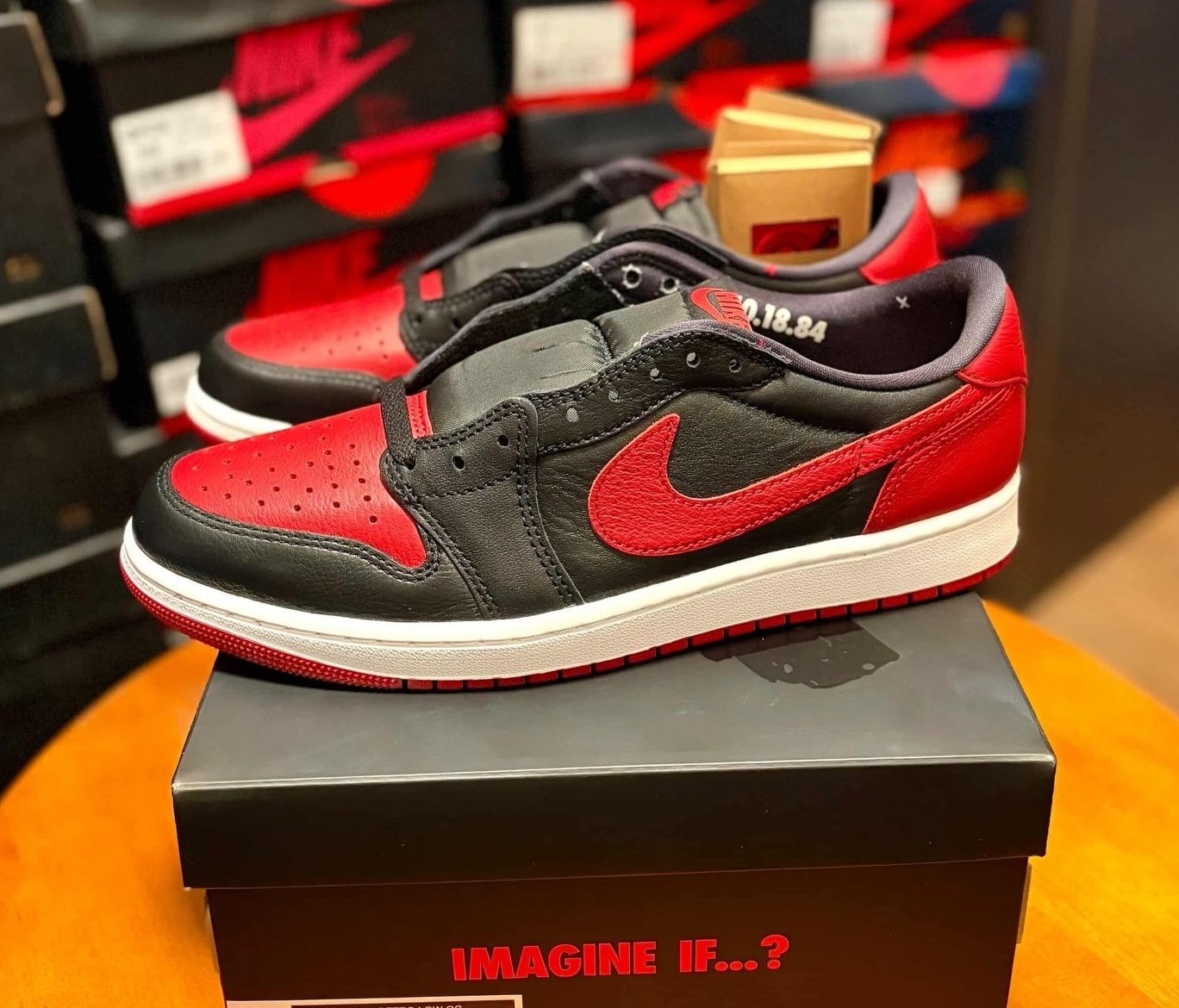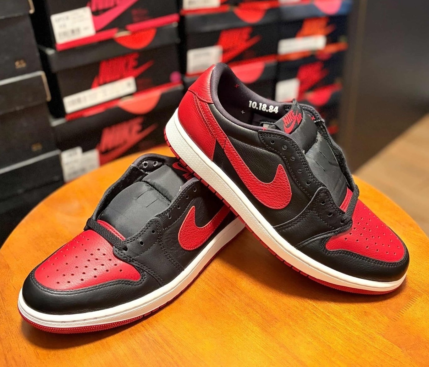 プレミアムレザーの質感、ビッグSwooshの復活、赤トゥボックスの鮮烈さはそのままに、ヒール「X」、左右インソールのテキスト(「1984年9月15日…」「1984年10月18日…」)、ソックライナーに刻まれた10.18.84の日付、すべてが2011年のオマージュでありながら、日常に溶け込むローカットの軽やかさが加わり、新たな息吹を吹き込んでいる。