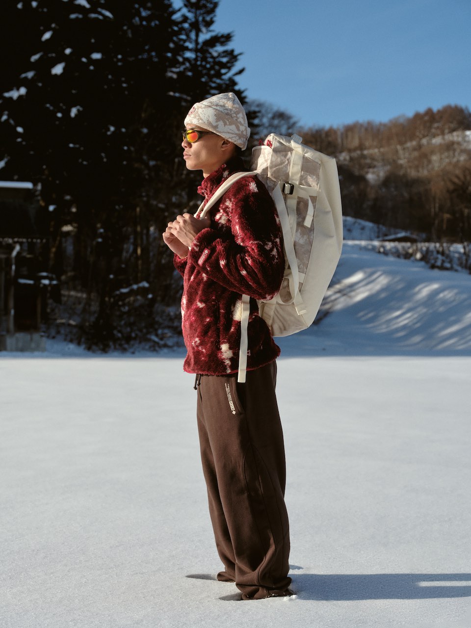 なぜ日本なのか? それは、北海道の極寒とパウダースノーが、スノーエクスペディションの究極の舞台だからだ。AspenやSt. Moritzではなく、あえて東へ視線を向けたこのコレクションは、日本の自然美と文化への敬意を込めたラブレター。過酷な環境でこそ輝く機能性と、Kithらしいモードな感性が交差する、まさに2025-2026シーズンのマストハブだ。