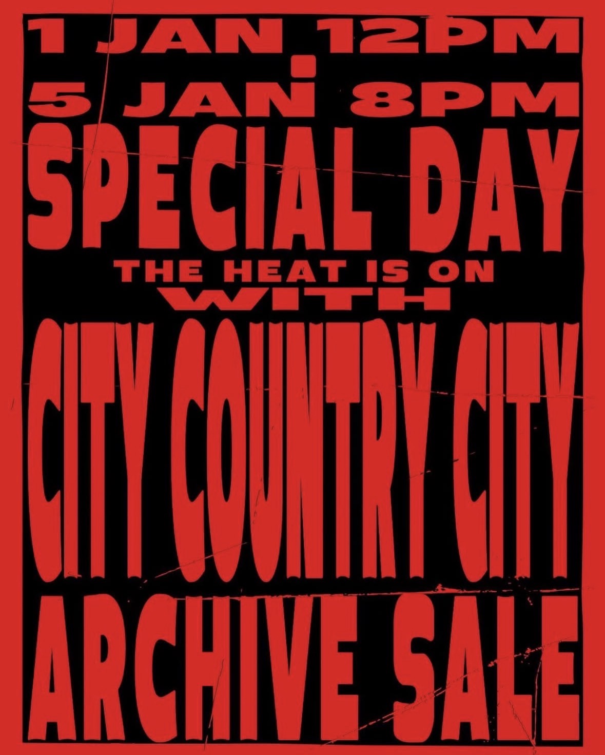 CITY COUNTRY CITYは、過去・現在・未来を融合させたクリエイションで知られ、アートや音楽からのインスピレーションを落とし込んだアイテムが、ストリートシーンで根強い支持を集めている。オンラインを中心に展開されるこのセールは、新年のワードローブを一新したいスタイリッシュな人々を狙い撃ち。熱い視線が集まる中、早めのチェックが吉。The heat is on — あなたもこの熱気に身を委ねてみては?