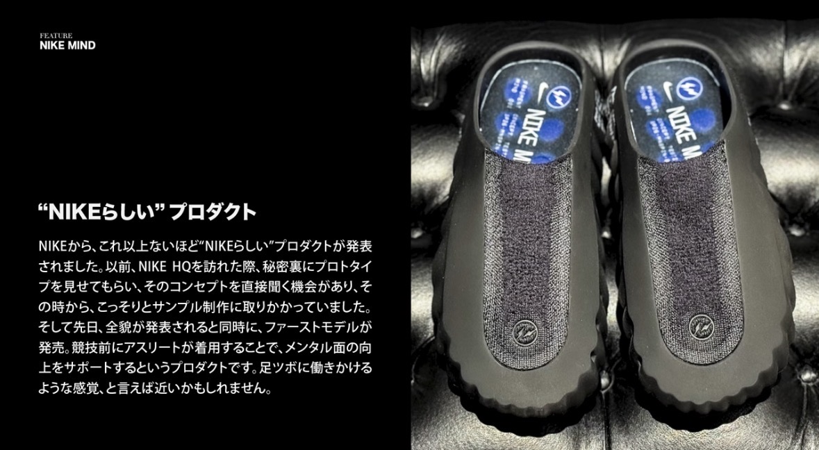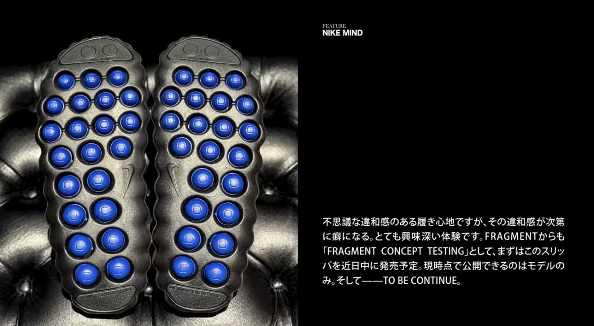 Nikeが数年にわたり神経科学者たちと取り組んだ、新カテゴリー「Nike Mind」の最前線に、Fragmentの美学が静かに介入した瞬間だ。