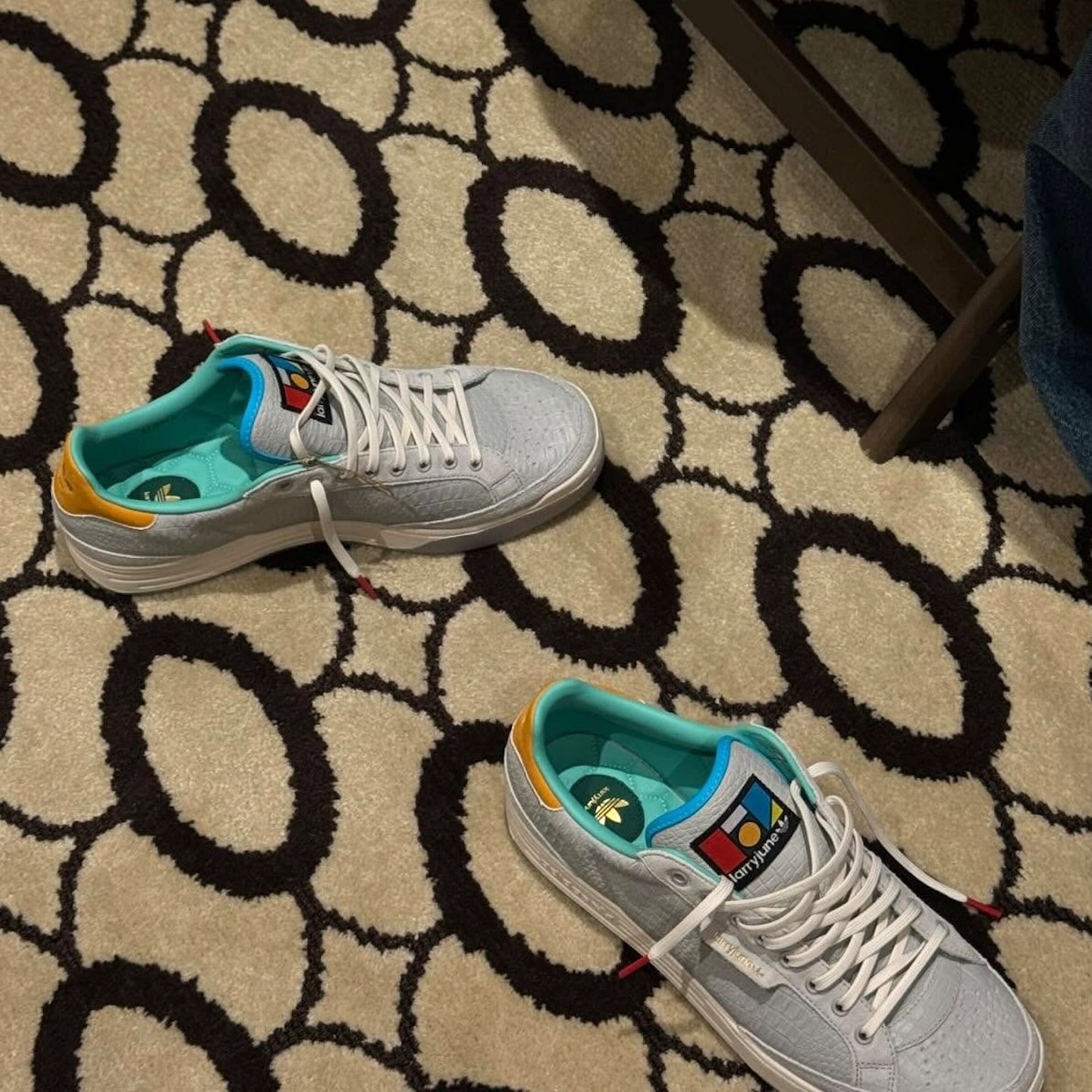 そして2026年、この2つの世界が交わる瞬間が訪れた。Larry June x adidas Rod Laverコラボだ。3月にLarry本人がInstagramでプレビューを公開。クラシックなシルエットをプレミアムなオストリッチスキンレザーと爬虫類風テクスチャでアップデートし、グラフィックを極力抑えた洗練された仕上がり。Larryのオレンジモチーフを控えめに取り入れつつ、エレガントで上質な印象を強調している。