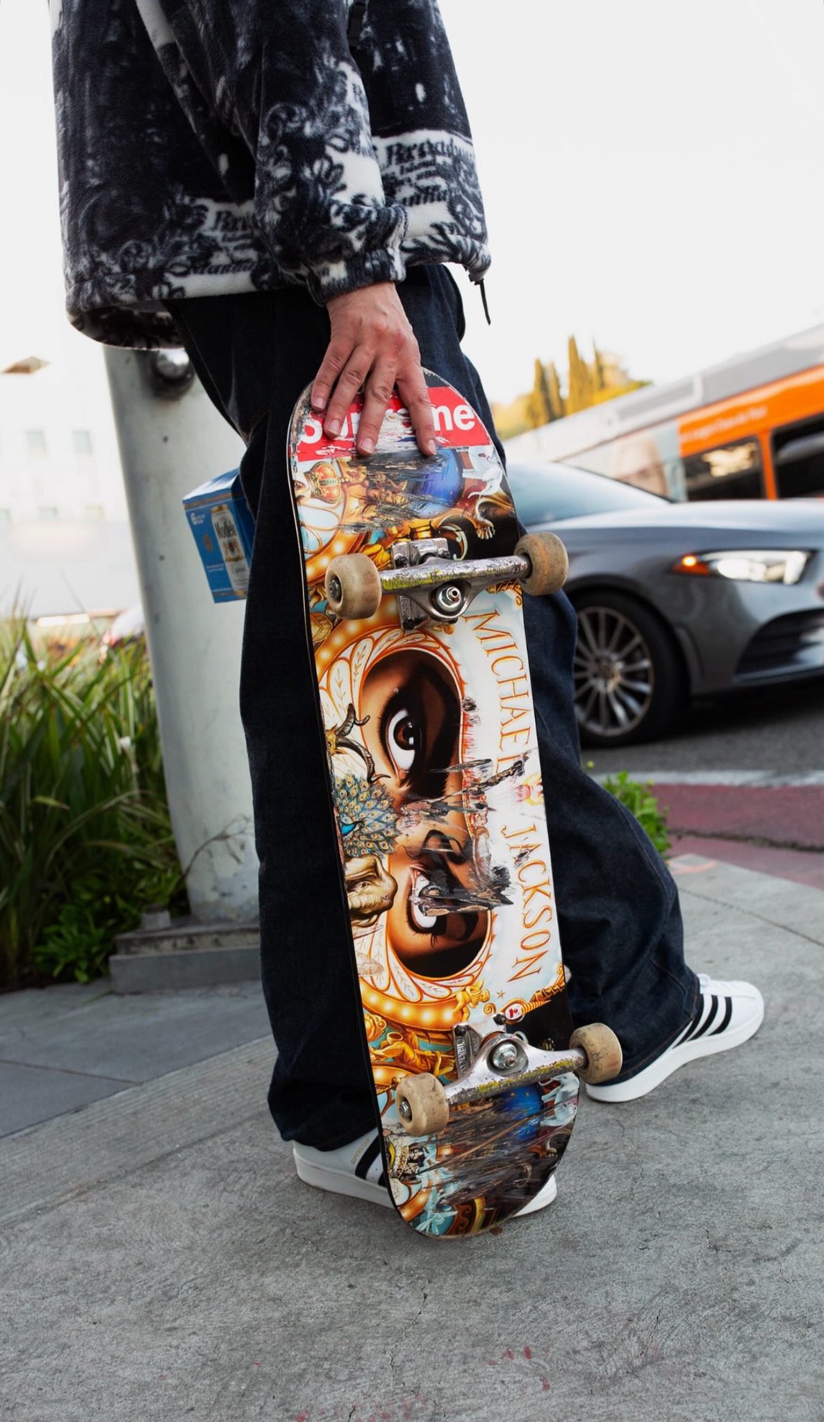 特に目を引くのは、Michael Jackson® Dangerousシリーズ。1991年のアルバム『Dangerous』の象徴的なアートワーク——Mark Rydenが手がけた幻想的で大胆なビジュアル——を全面に押し出したデザインは、King of Popの遺産を現代のストリートに蘇らせる。ブラッシュドバックフリースのZip Up Hooded Sweatshirtは、袖やバックにアルバムカバーをプリントし、着るだけで圧倒的な存在感を放つ。メッシュ素材のMesh Shortはレイヤード次第でシーズンを問わず活躍し、Skateboardデッキはコレクターの心を掴んで離さない。2017年の“Billie Jean”コラボ以来のMJ公式コラボ第2弾だけに、ファン層の厚さと即完売の予感が漂う。
